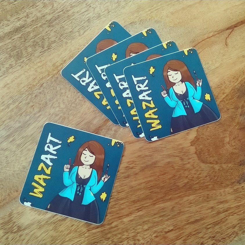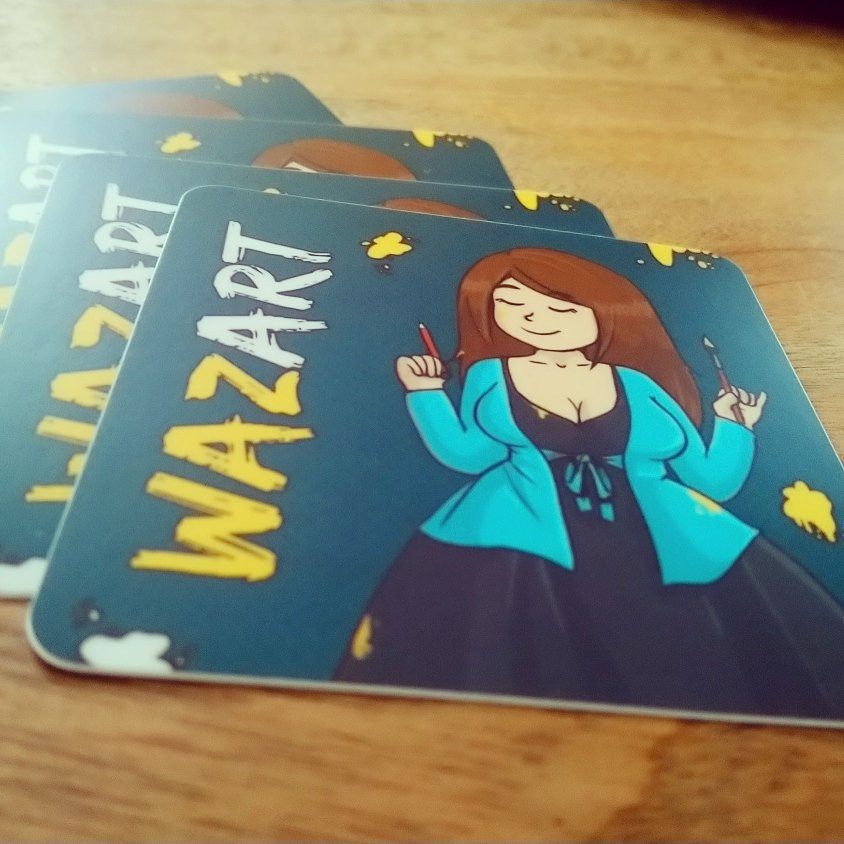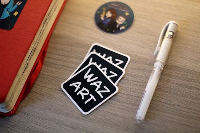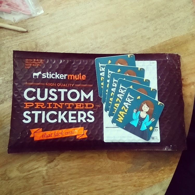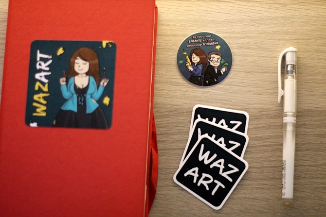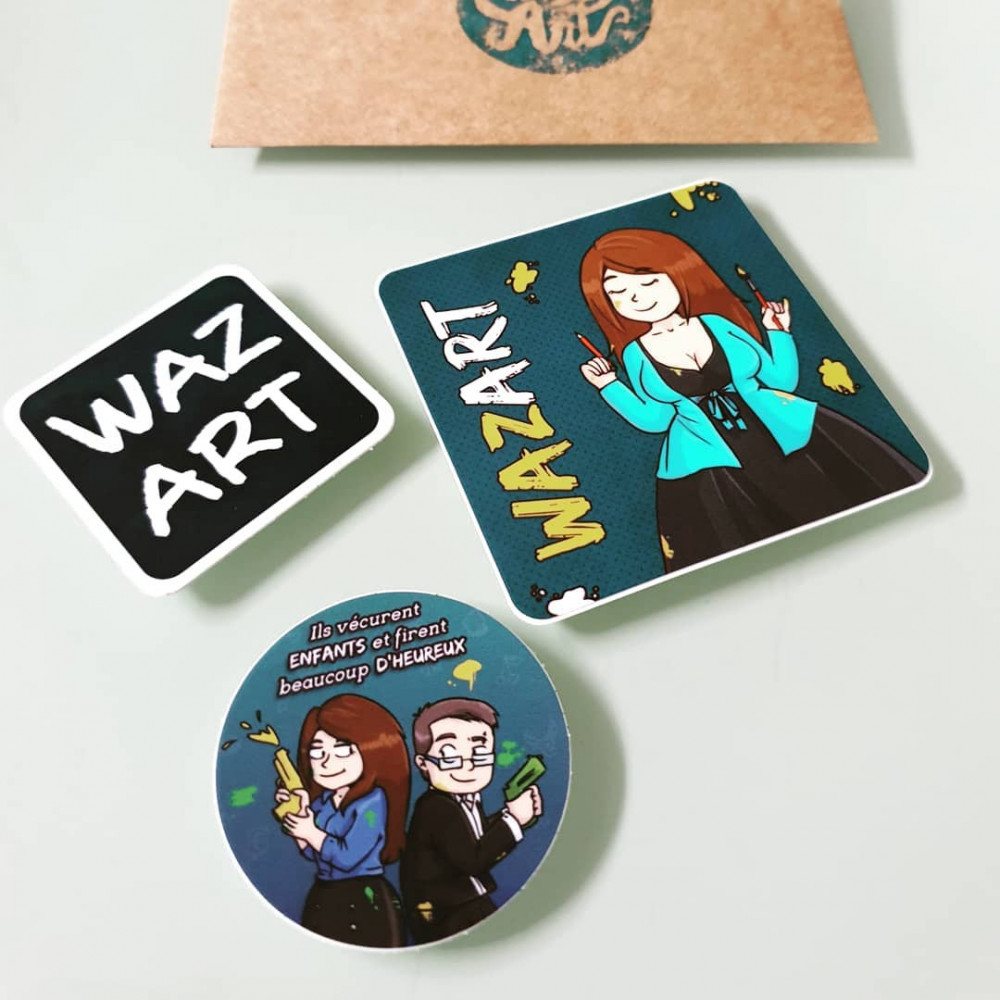Effectivement, les stickers sont fournis dans une jolie enveloppe en papier kraft bien épais, avec mon estampille sur le devant. Tu auras peut-être reconnu le tampon "Wazart" que j'ai sculpté de mes propres mains !