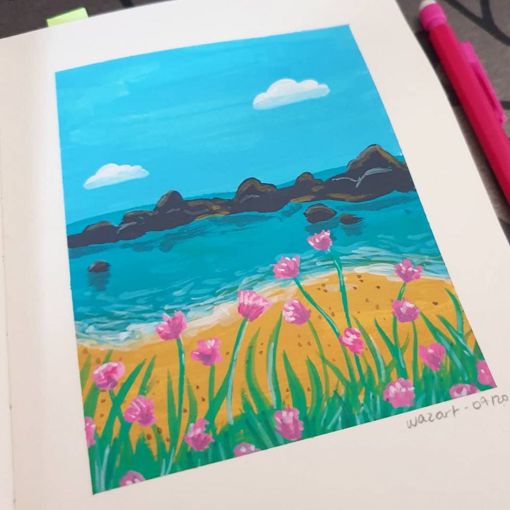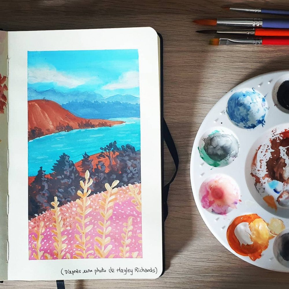 Voilà où j'en suis de mon périple à la gouache, pour le moment. Il n'est certainement pas terminé : j'ai juste envie de poser ma semaine et partir m'isoler n'importe où pour peindre à longueur de journée. D'ailleurs ça me donne envie de reprendre cette technique de paysages "flat" et de l'appliquer sur une toile à l'acrylique. Juste pour voir 🤔