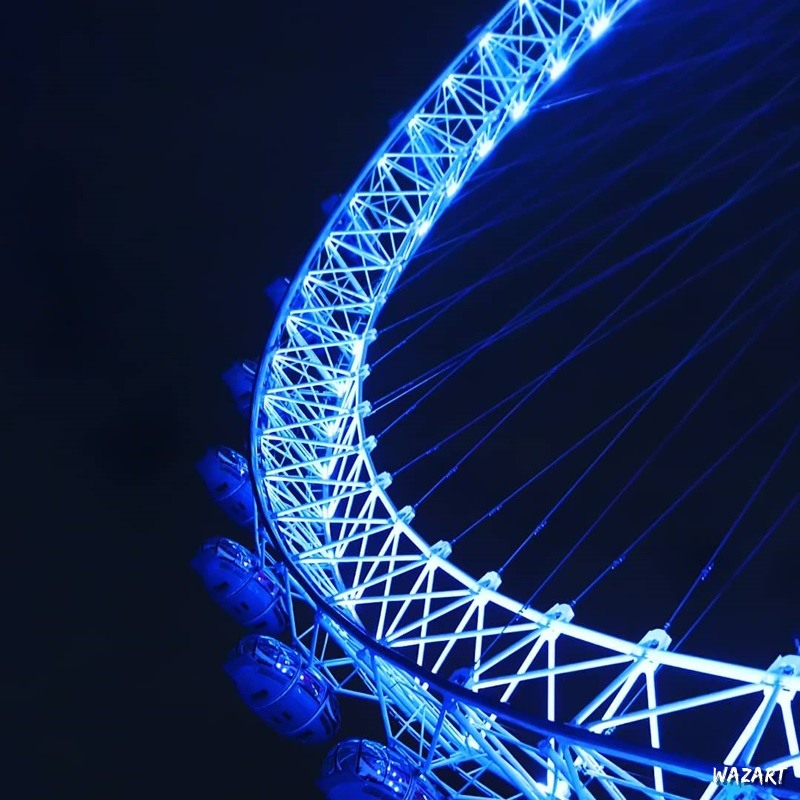 Bref, on commence avec une vue de nuit du London Eye (aussi connu sous le nom de Millennium Wheel). La salle d'arcade de ouf se trouve quelque part dans le bâtiment à droite, il me semble.