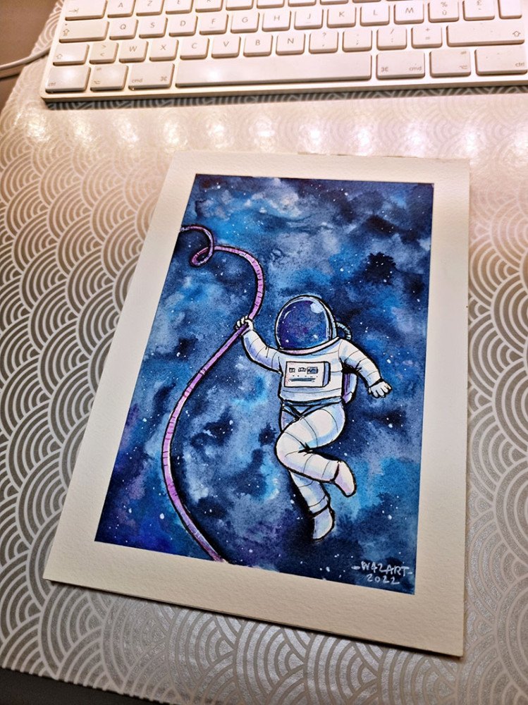 Pour que ça fasse un peu plus propre que le reste (je me dis que visuellement, ça fait une moyenne ? non ? ah.), j'ai sorti la découpeuse à vinyle pour me créer de jolis "Bonne année 2025", et j'ai collé un coup de Posca doré sur le casque de l'inktonaute. Tada !