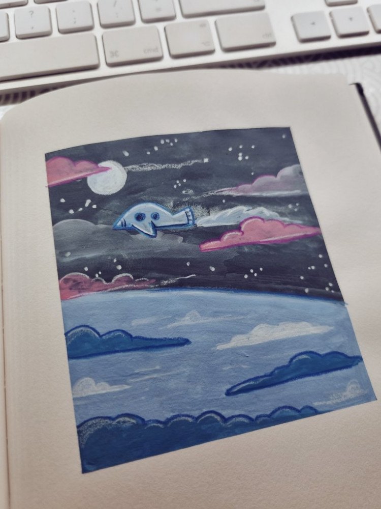 Pas fan de l'encrage noir, donc, et j'ai donc fait une tentative très rapide dans mon carnet (hors stream) :