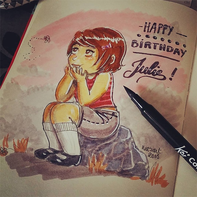 Et tant que j'étais en train de faire mumuse avec les feutres, j'ai fait un petit dessin d'anniversaire :
