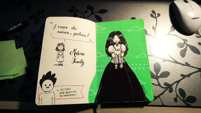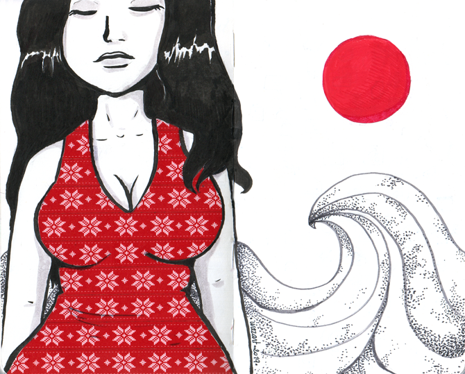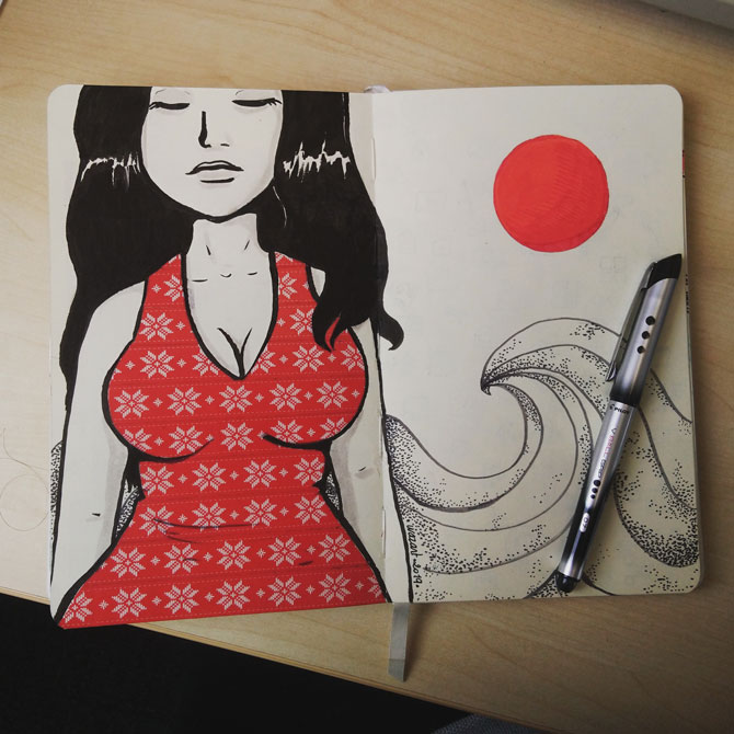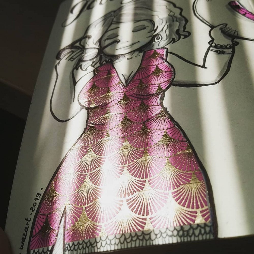 On termine avec mon illustration préférée, un combo de masking tape, Posca, Koi, Pentel et pointillisme :