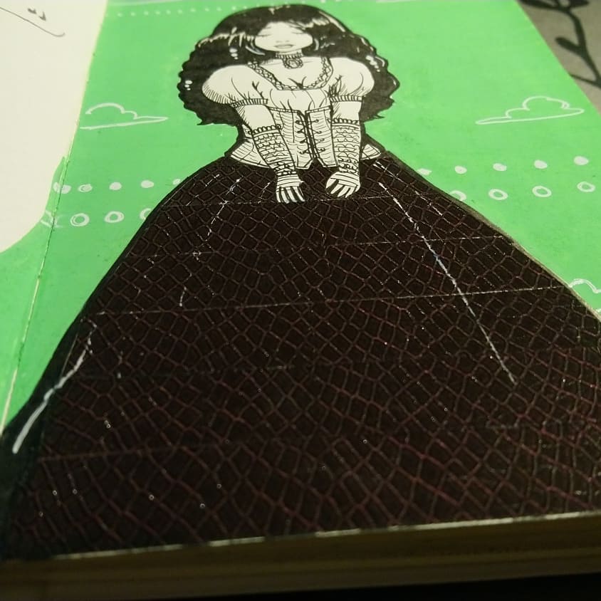 Salut mon poussin ! Comme le dit le titre de l'article, je reviens à la charge avec toujours plus de washi tape ! On commence avec l'essai que j'aime le moins : illustration pas terrible, masking tape texture "velours" + motif python, et fond au Posca vert-pas-beau.