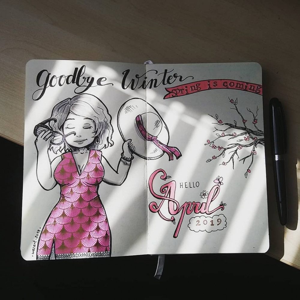 Le "April" me fait grincer des dents, j'aurais dû m'arrêter avant de mettre les petites fioritures... ou bien meubler l'espace avec un Polaroïd (enfin, un Instax) au lieu d'en faire des caisses avec la pseudo-calligraphie. Allez, résultat mitigé on va dire.