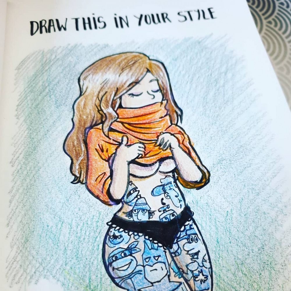 Velma (aka "Vera" en français, il me semble) m'inspirait peu, donc j'ai complètement tordu le concept et ne conservant du personnage de Scoobydoo... que la tenue 😅 A noter également que j'essaie d'en profiter pour varier le medium, donc cette fois : crayons de couleur. Sauras-tu reconnaître toutes les références ?