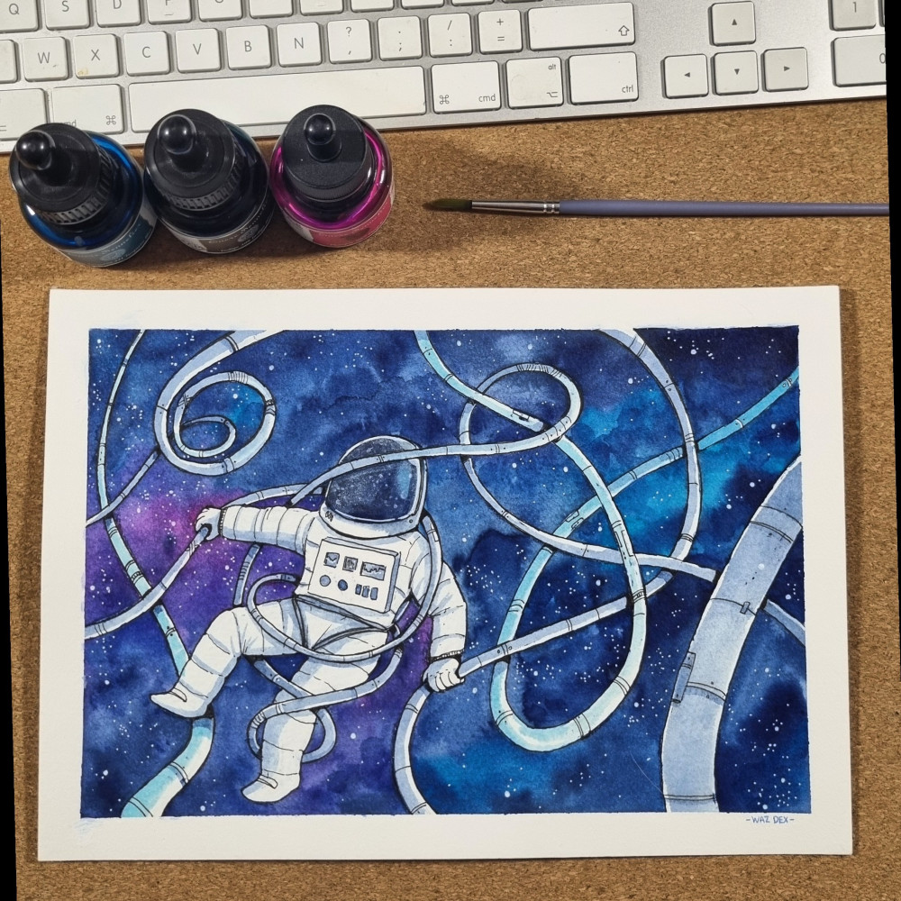 Pour une fois j'ai laissé ma tronche, j'expérimente un peu (option casquette de Wario). Cette illustration s'est étalée sur 4 streams pour environ 14h de travail, le tout sur un format A3 auquel je ne suis pas du tout habituée. Et avec en parallèle un "giveaway" - une loterie, en somme - pour fêter les 300 follows sur ma chaîne Twitch. Pfiou.