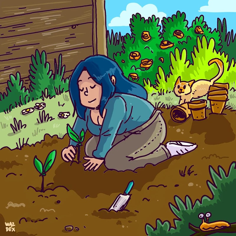En période de reprise des activités au jardin - oui bon, j'ai un peu de retard sur les publications, mais je suis en train de rattraper tout ça - j'ai passé pas mal de temps dans le potager. Voilà qui m'a inspiré cette petite illu, réalisée sur tablette Android :