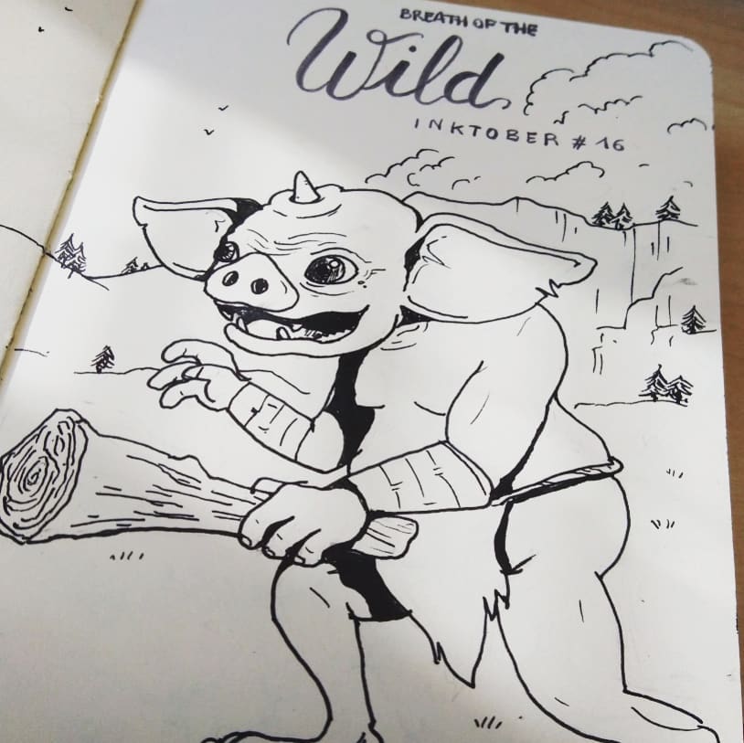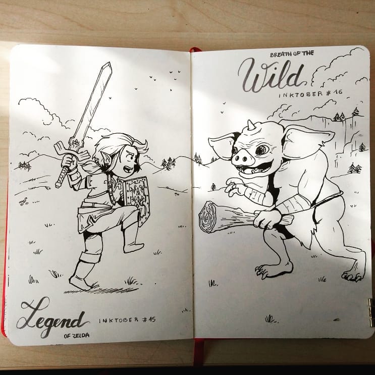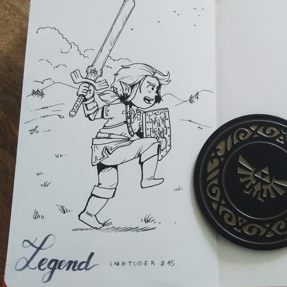 Ce ne serait pas un vrai Inktober pour moi si je n'avais pas le traditionnel fanart de Link. Et vu le combo legend/wild, je n'ai pas résisté à l'envie d'illustrer le jeu Legend of Zelda - Breath of the wild ! On a donc un petit Link brandissant l'épée de légende :