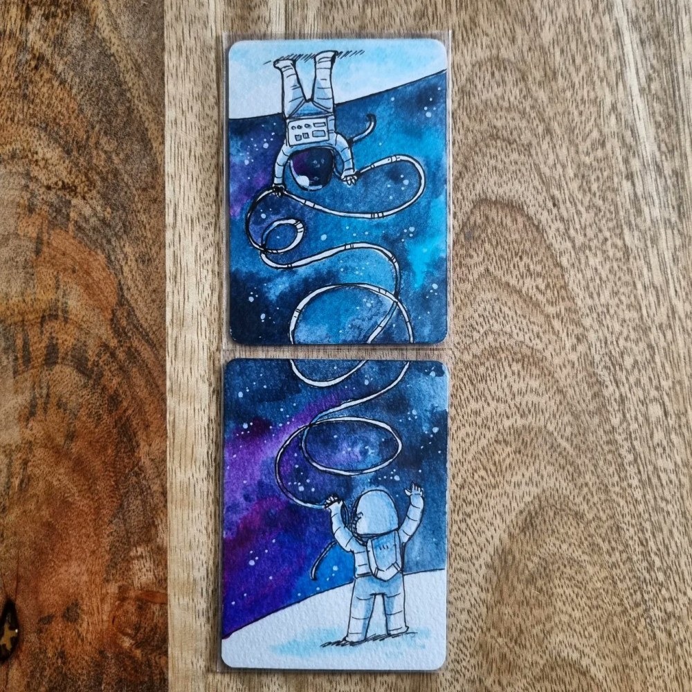 La seconde, une expérimentation (pas très très réussie) avec une marque de fluide de masquage - une sorte de gomme liquide que l'on étale pour protéger et réserver le blanc du papier le temps de faire un lavis de couleur. J'en ai profité pour jouer avec des aquarelles artisanales (très chouettes), et un stylo qui s'est avéré... ne pas être waterproof. Ce qui donne un résultat bien éloigné de ce que je fais en temps normal :