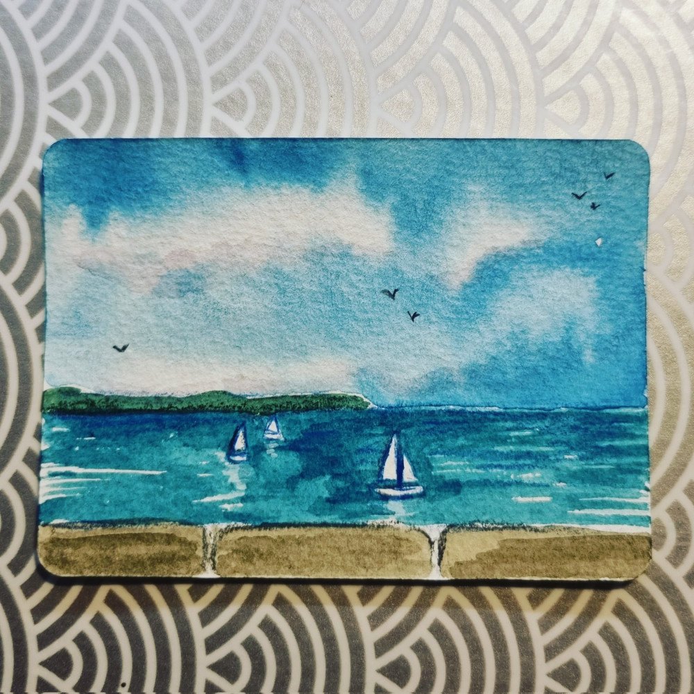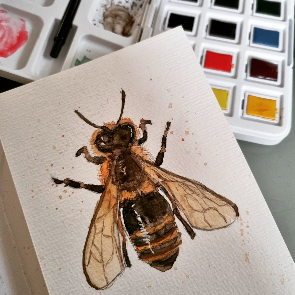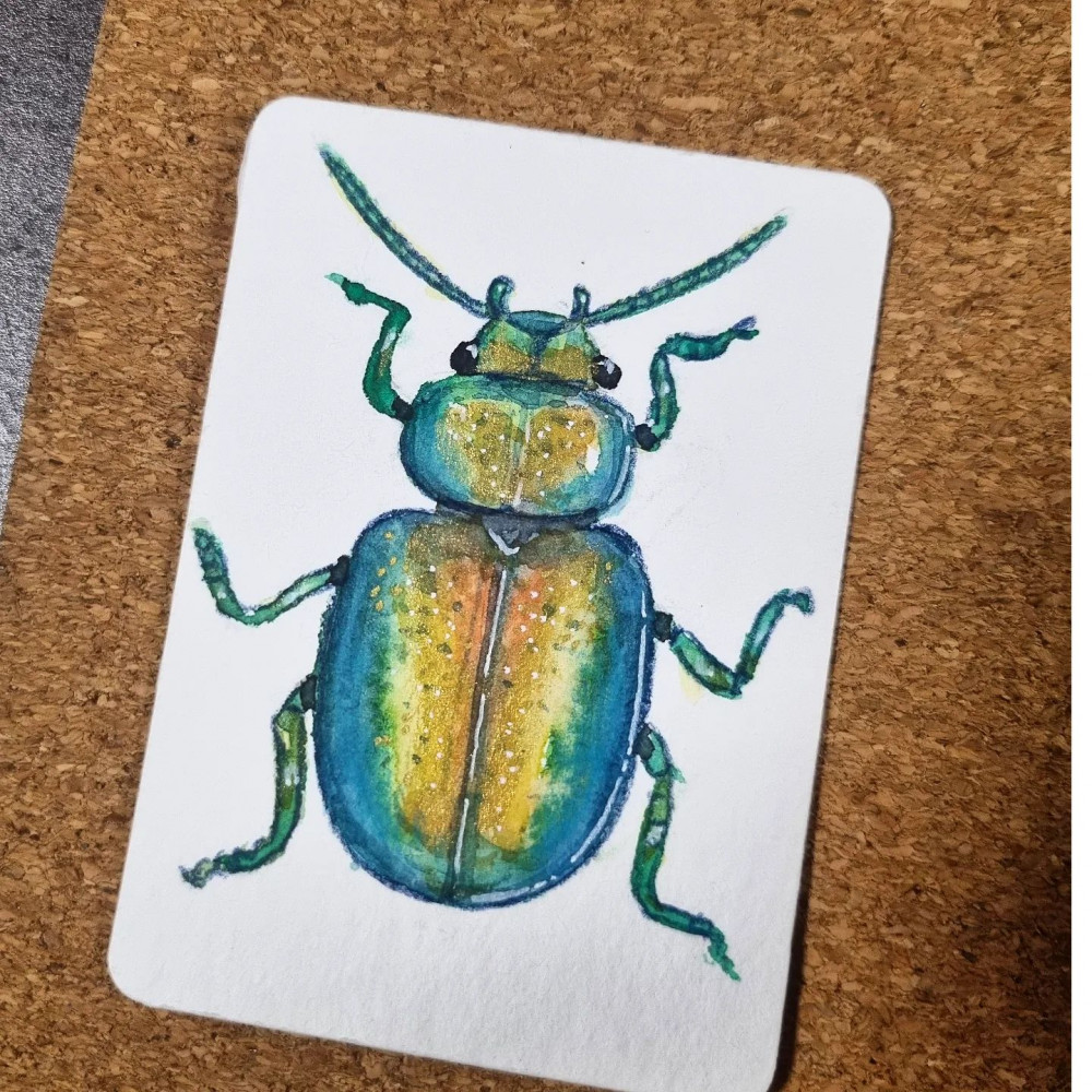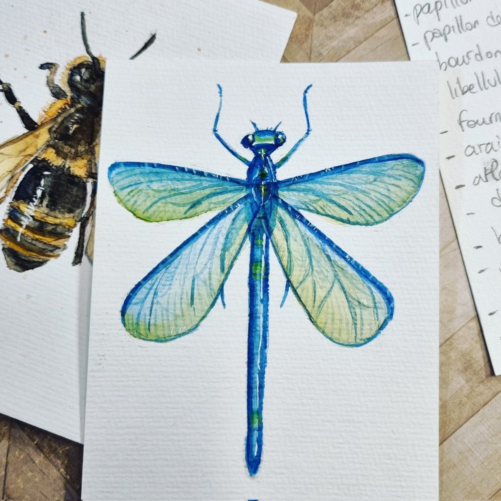 Trois petites ATC (toujours ces petites cartes format collector que l'on s'échange entre artistes). La première est également une petite étude "insecte" à l'aquarelle :