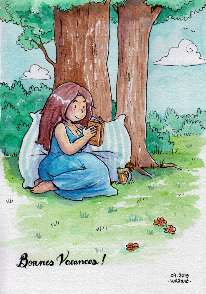 Je ne me lasse pas de réaliser ces ciels hasardeux à l'encre... Il n'est donc pas improbable que ce petit personnage revienne de temps à autre, quand j'aurai envie d'une illustration "lâcher-prise".