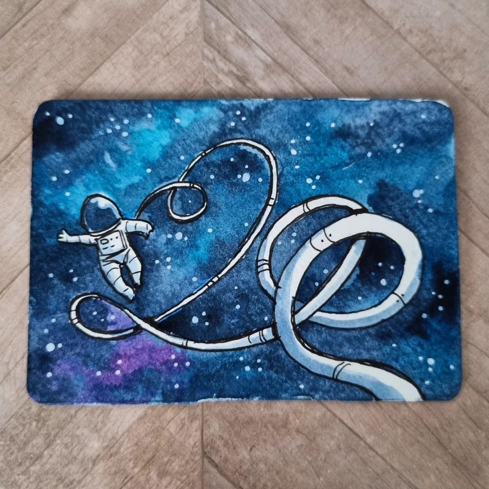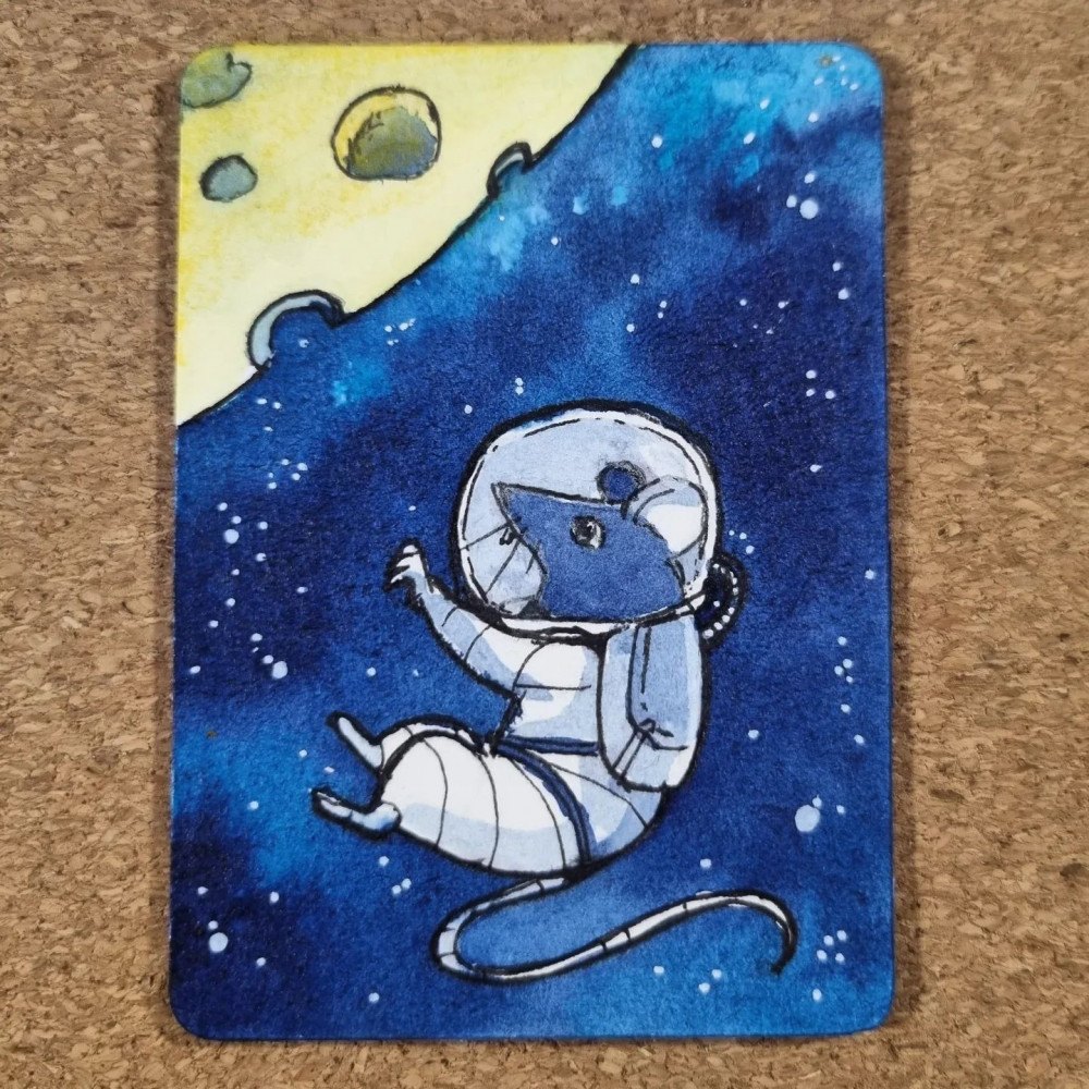 Ça faisait bien longtemps, une petite fournée d'ATC*, cette fois réalisées sur papier noir aux crayons de couleur. Cela faisait bien trop longtemps que je n'avais dessiné ma petite Inktonaute, l'affront est réparé !