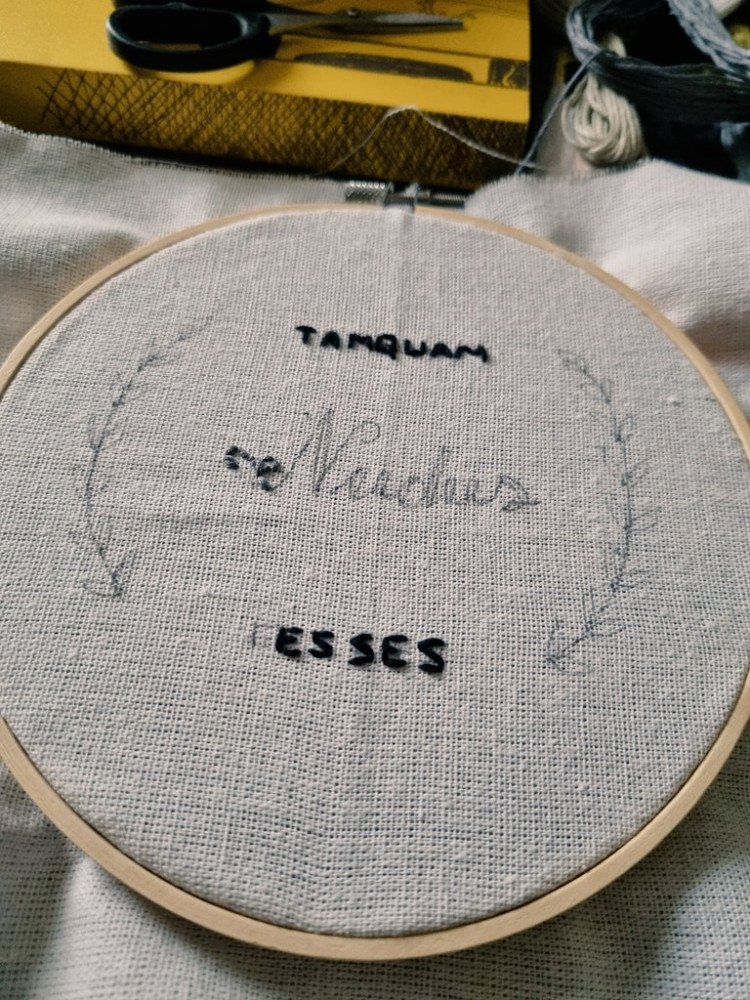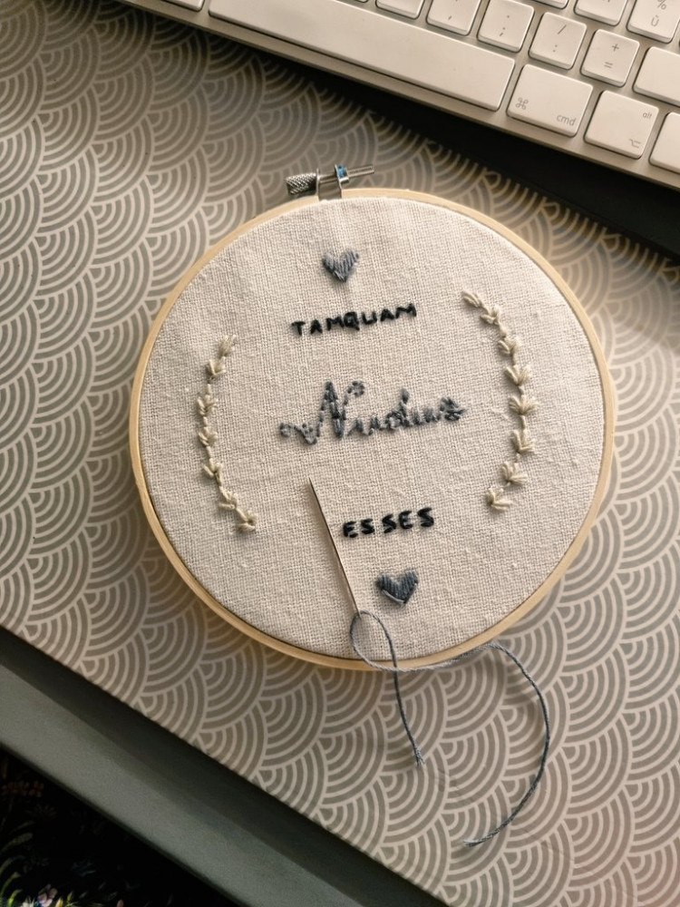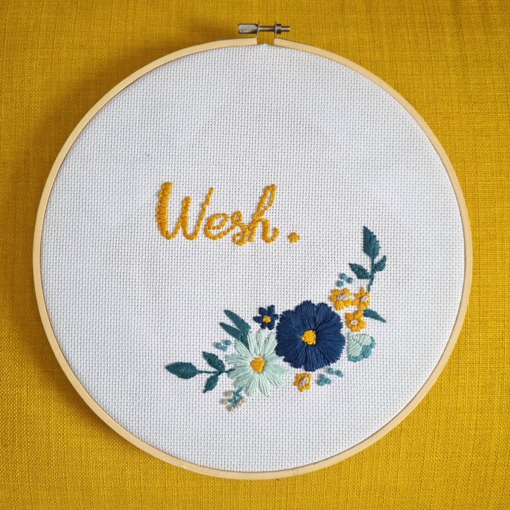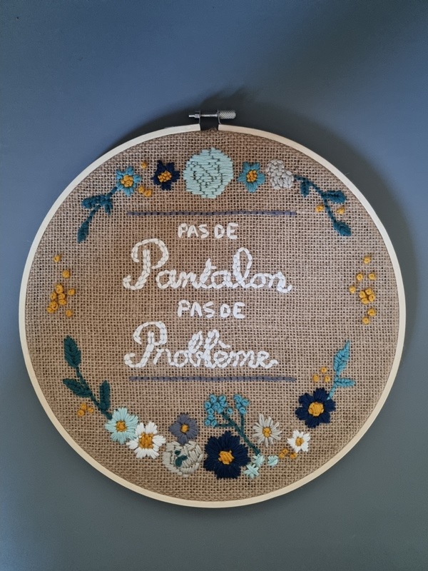 Je n'ai pas encore trouvé le courage de me lancer dans le broderie d'une illustration (ça viendra, je pense). Donc pour le moment je m'en tiens aux petites fleurs cucul... et je me venge sur le texte pour compenser 🤓
