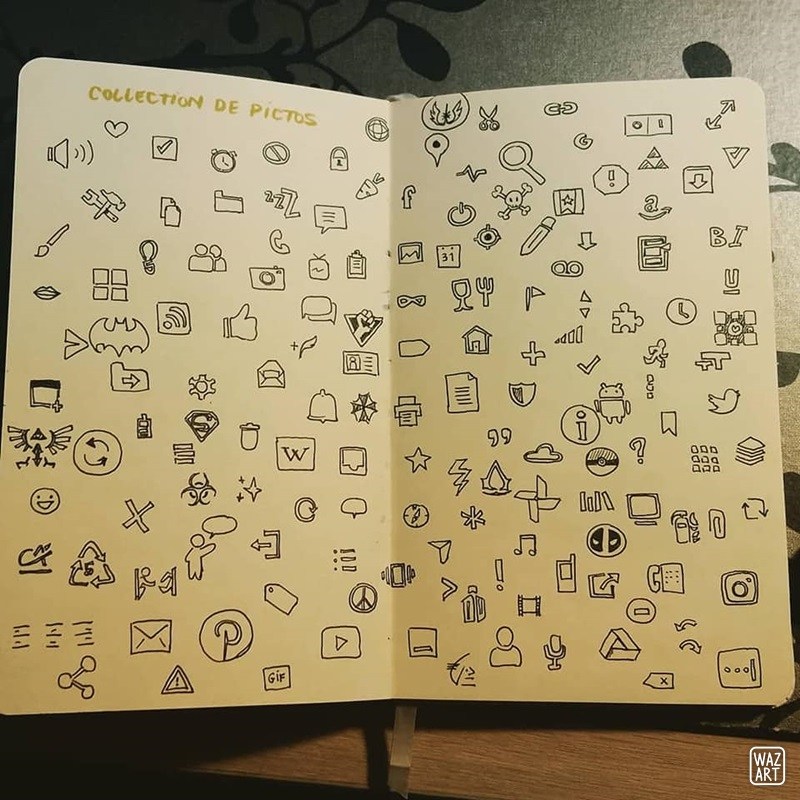 J'ai suivi une formation super chouette sur la facilitation graphique. L'un des exercices consistait à capturer plein de pictos dans son environnement. J'en ai profité pour glisser quelques références geek :-D