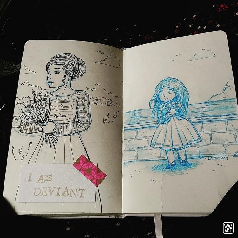 Je n'ai que du dessin à te montrer pour le moment, donc je continue à écluser tout ce qui traîne dans mon carnet !