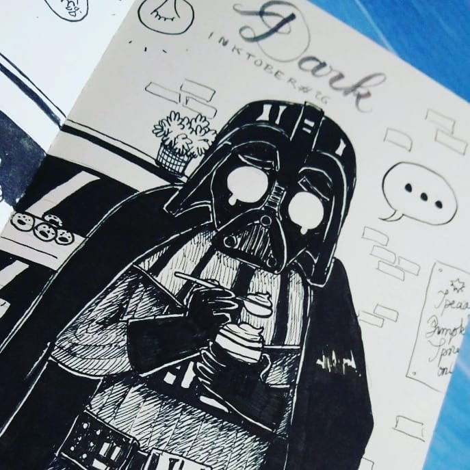 Je ne pouvais pas laisser passer "dark" sans dessiner Dark Vador... Bon, mais ça ne marche qu'en français vu que c'est Darth Vader dans la version originale !