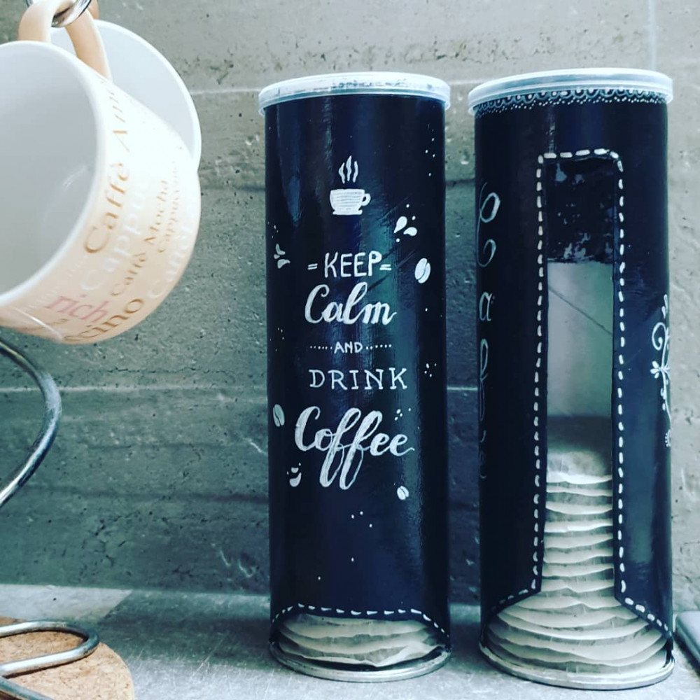 Et voilà. Si tu veux essayer ce DIY (aka "do it yourself" aka "fais-le toi-même" aka "bricolage de schlag"), j'avais fait un tuto/making-of complet : "Pringles hack : Porte-dosettes Tassimo" que j'avais fièrement repompé de Pinterest. Tu noteras donc que ça fonctionne aussi parfaitement pour les dosettes Senseo (non j'ai pas d'actions ni chez l'un ni chez l'autre). Si d'aventure tu te lances, montre-moi le résultat, ça me fera bien plaisir ! La bise (un coucou de la main à six mètres de distance, donc) et courage pour ce nouveau couvre-feu, ouééé...